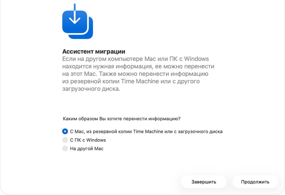 В отличие от Windows, где перенос данных — это квест с шаманством, у Apple есть фирменный инструмент. Он называется «Ассистент миграции».